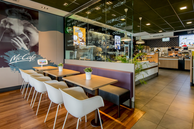 Unser Restaurant in Hennef liegt im Gewerbegebiet Hossenberg und wurde erst im März 2018 zum "Restaurant der Zukunft" umgebaut. Mit einem neuen Design erleben Sie hier eine moderne und ansprechende Restaurantatmosphäre mit 90 Sitzplätzen im Innenbereich und weiteren 72 auf der Terasse. Für eine Auszeit von der Hektik des Alltags lädt die aufwendig gestaltete McCafé-Lounge zum Entspannen ein.